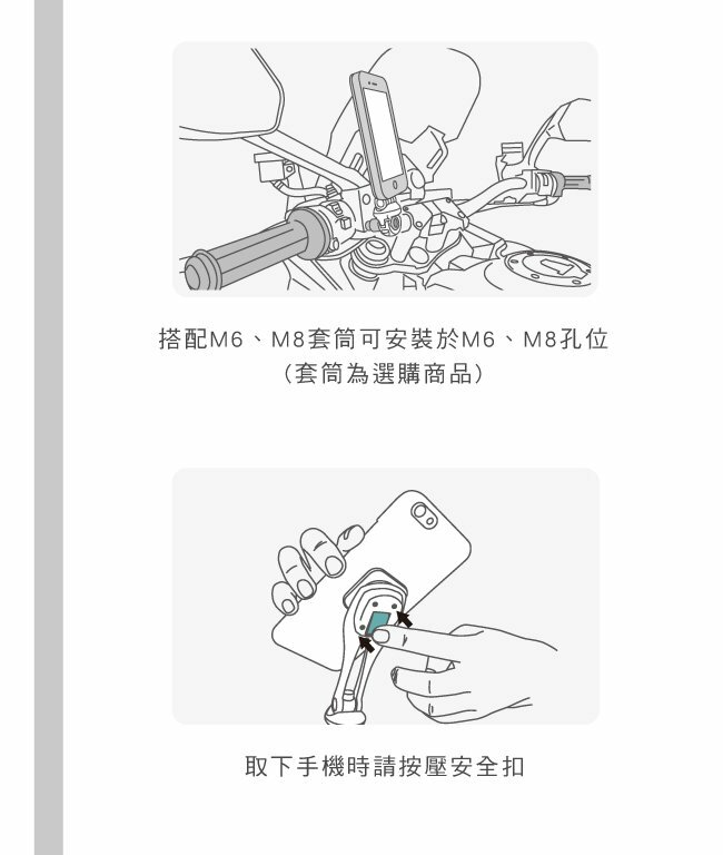 ★ 適用握把管徑 12-18.5 mm 腳踏車、機車
