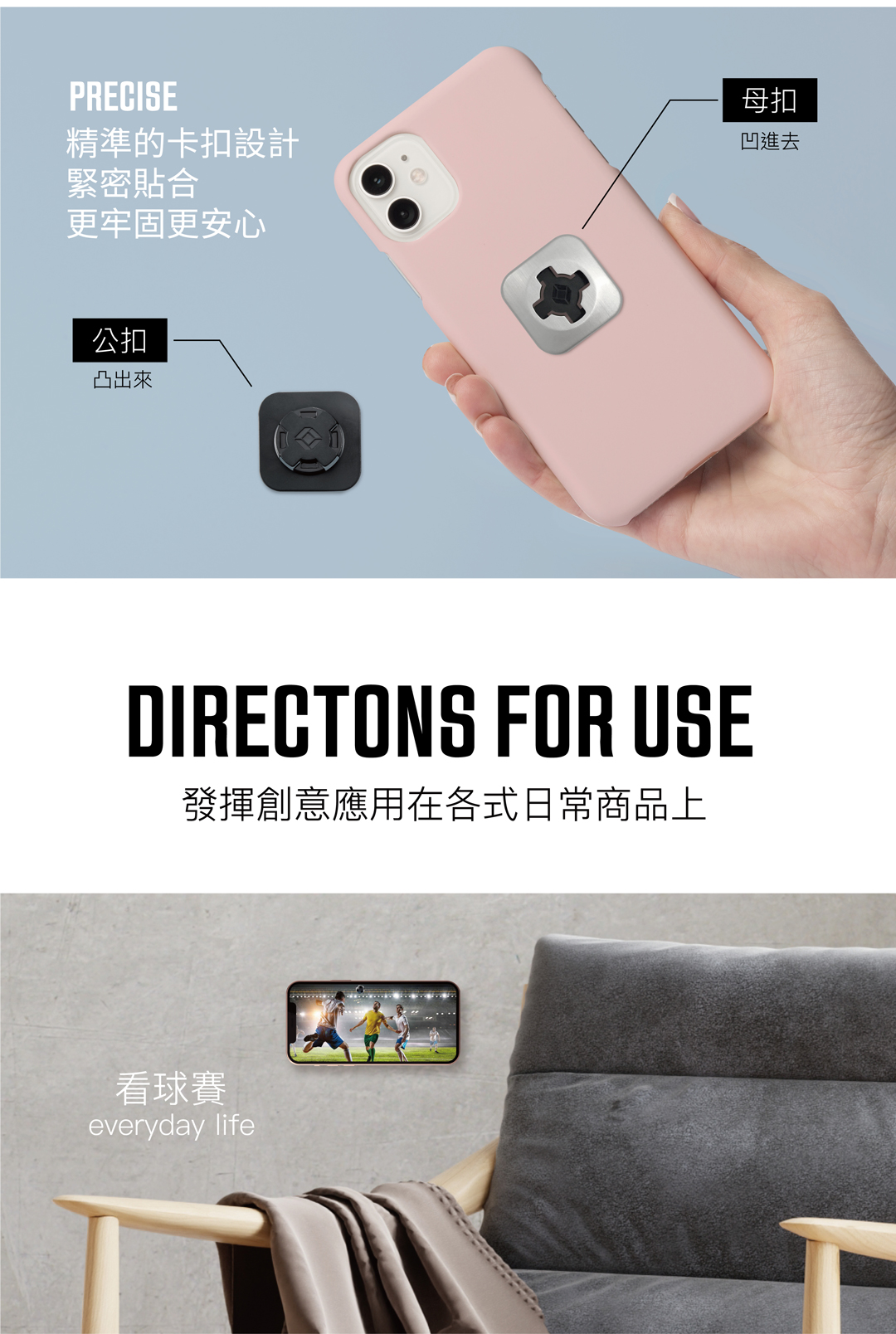 ► 母扣可搭配多元配件、便利您的生活