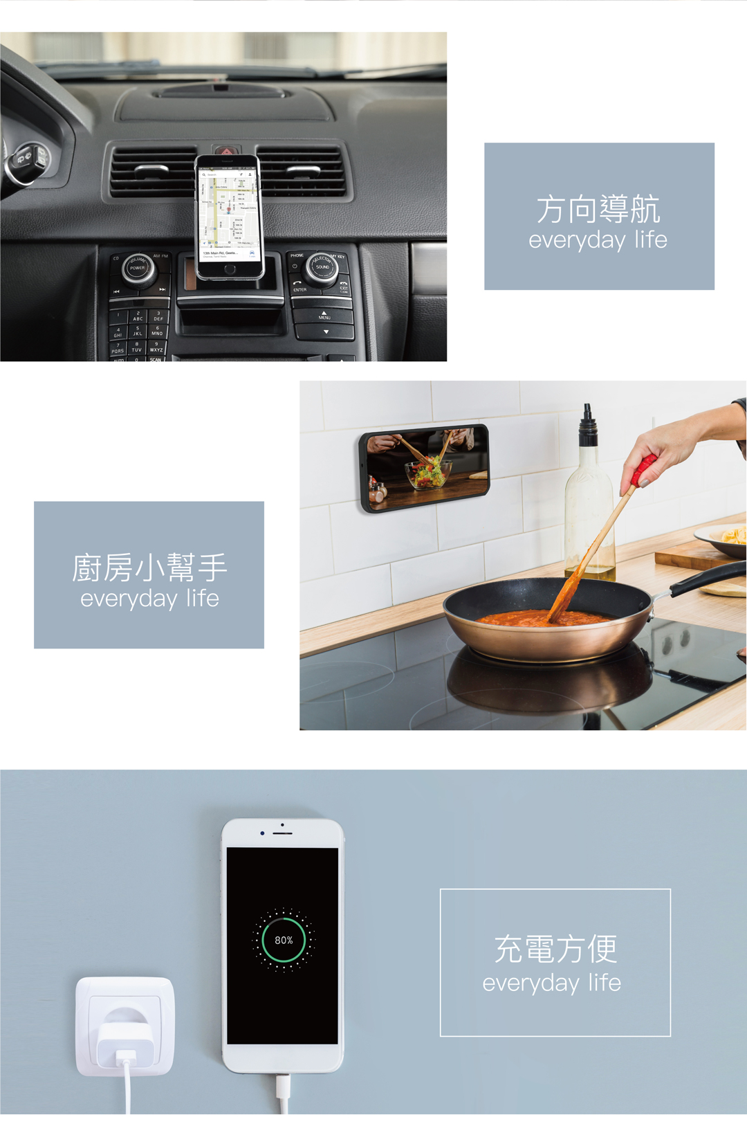 ► 公扣(另購):適用於所有堅固的表面,車內、臥室、廚房…等