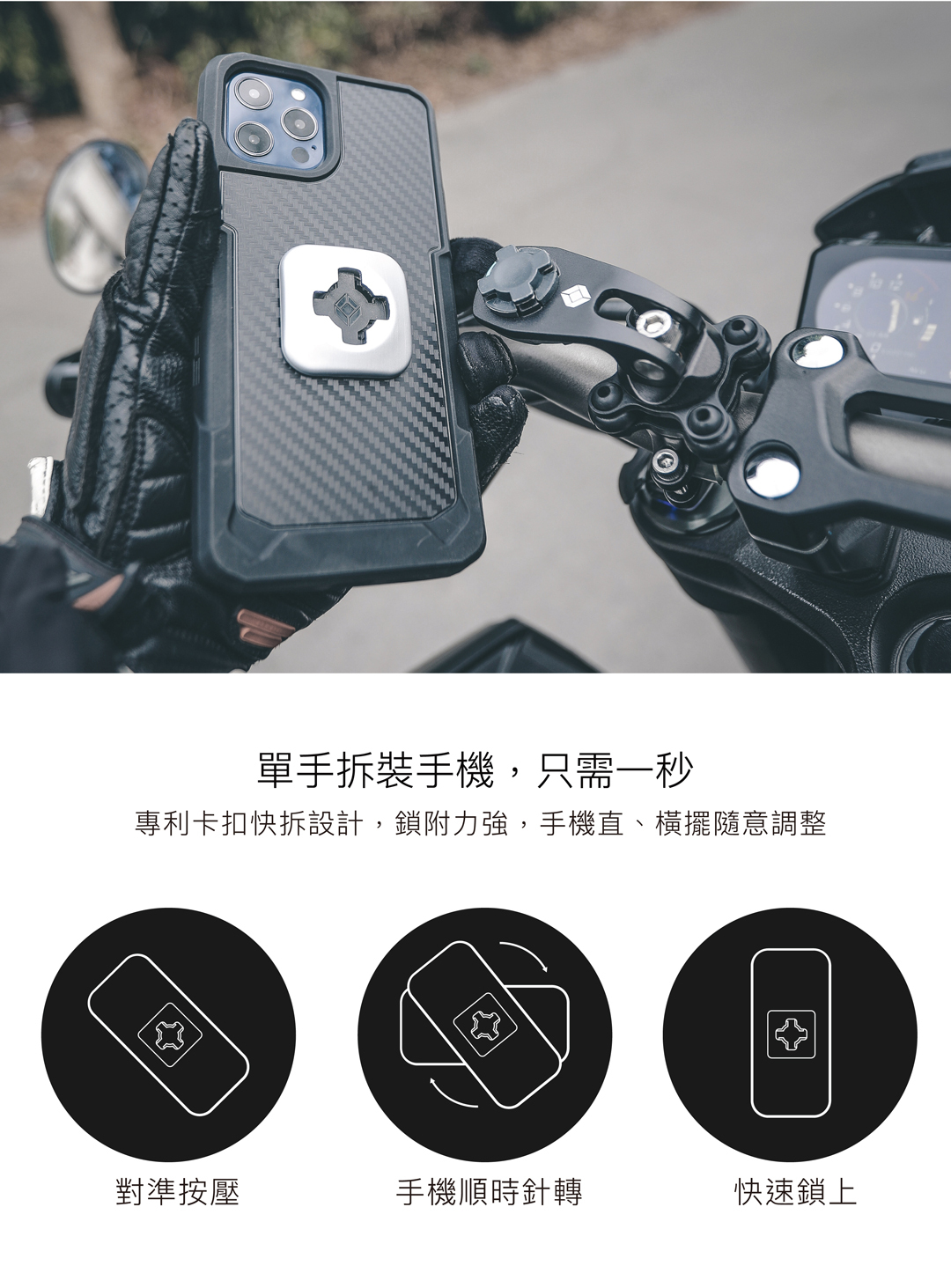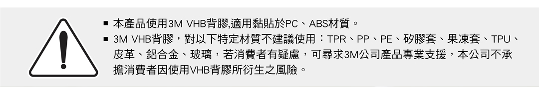 ► 3M VHB強力膠貼,動態使用(如搭配車架或運動臂套)重量限制為200g