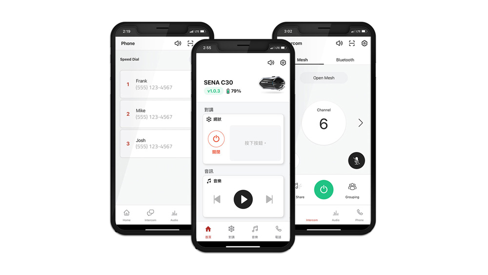 App能提供你視覺化、更直覺的操作方式,為C30的更多功能與設定進行設置,包括了遠端的公開模式通道設定,或是網狀群組的設置。請至APP Store或是Google Play下載SENA Motorcycles APP。