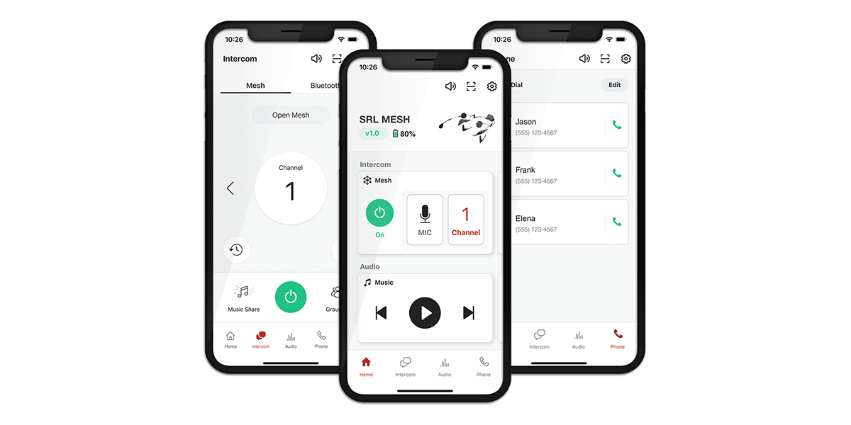 SENA Motorcycles APP提供使用者一個以視覺化方式設置SRL-MESH,下載APP來設定不同的設置及功能,包括了從遠端管理公開模式的通道設定,或是設置一個網狀群組。APP可在APP Store或是Google Play商店下載。
