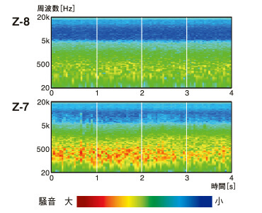 圖一為Z-8安靜的性能(與傳統型號Z-7相比)