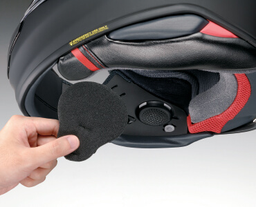 可抑制騎士耳朵附近的鏡片旁行駛風的湍流並降低風噪聲。