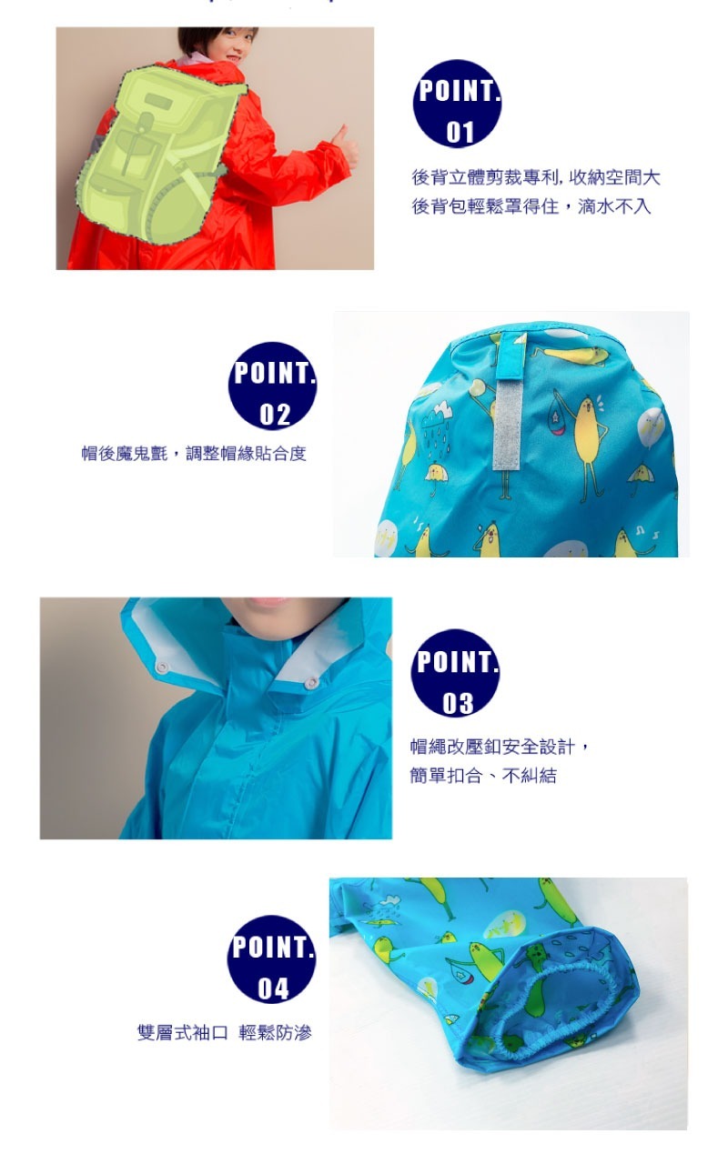 ➜上衣擋水層採魔鬼氈+拉鍊